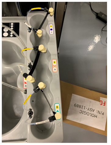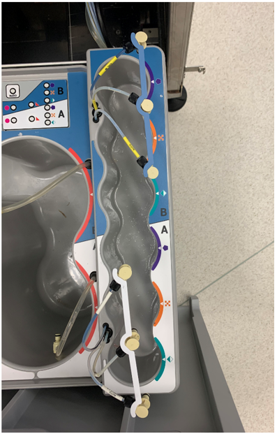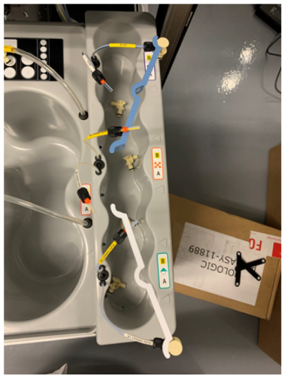 Push the Wash, Deactivation, and Bleach fluid lines into the UFD bin.