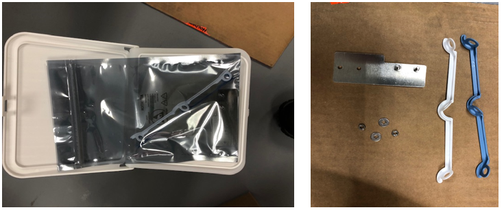 Tubing Separators (blue and white), Bleach Sensor relocation bracket nuts and spacers.