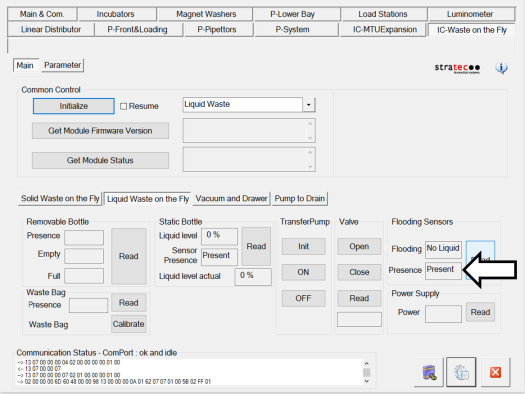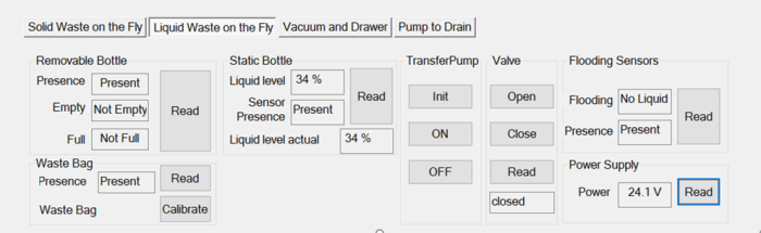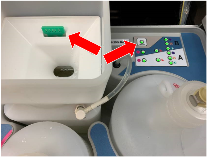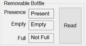 Verify the Removable Bottle Sensors are reading Present, Empty, and Not Full with no fluid present.