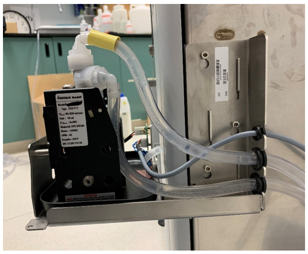 Connect the elbow of the pump to waste drawer tubing to the waste bottle tubing.