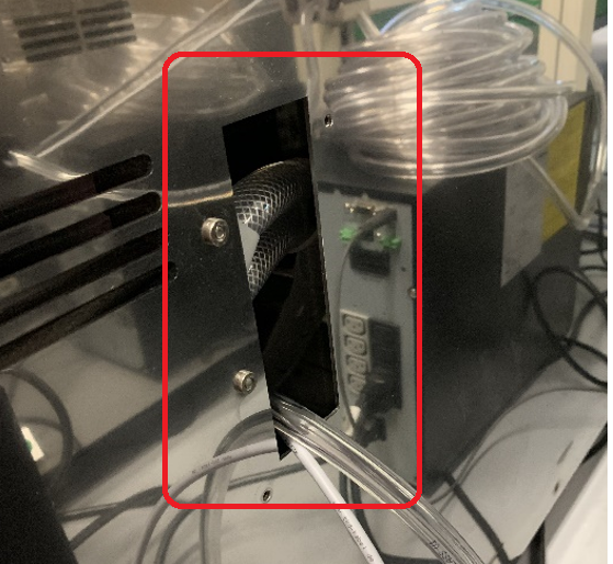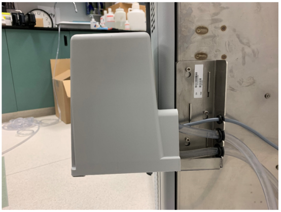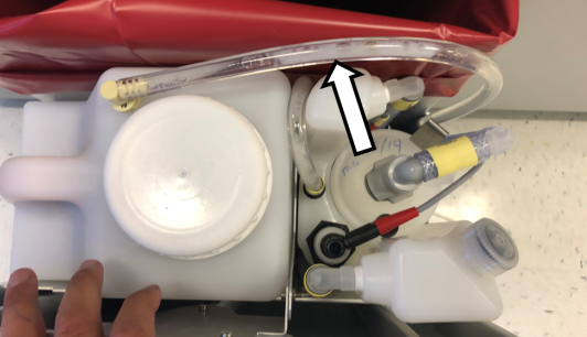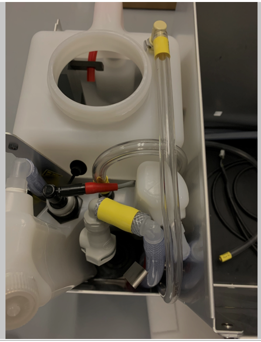 Connect the tubing to the Removable Waste Bottle. Ensure that the tubing is below the level of the top of the Drawer.