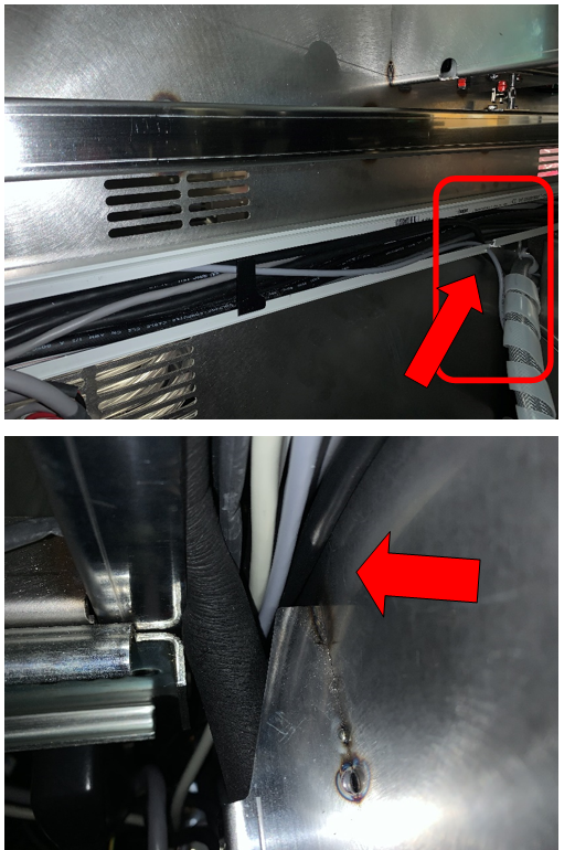 Route the cable up through the notch in the cable chase, through the chase, behind the cooling tubing and up the left side of the frame.