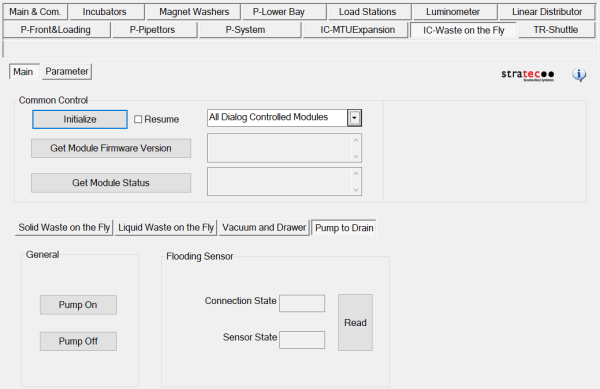Initialize the Waste to Drain Pump in Service Software.
