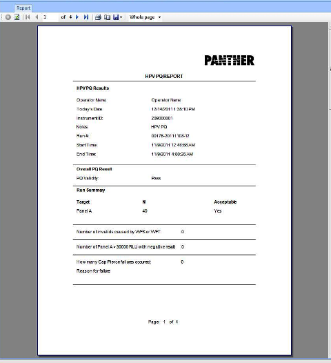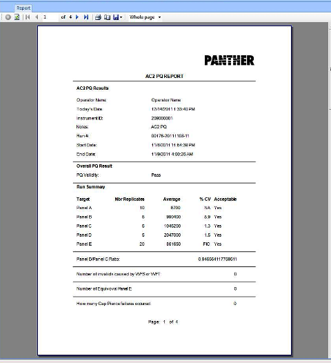 The Performance Qualification results can be analyzed and reported with the Panther Dashboard software