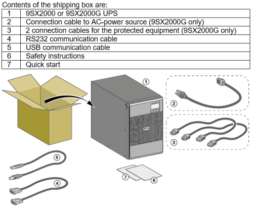 - Unbox the contents of the Eaton 9SX2000/g UPS box on to the working surface.