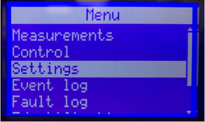 From the Start screen, press the ↓ button until Settings appears, then press the ⤶ button.