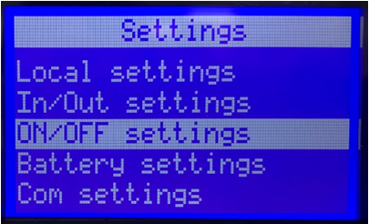Press the ↓ button until ON/OFF settings appears, then press the ⤶ button.