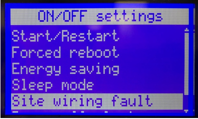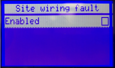 Press the ↓ button until Site Wiring Fault Alarm appears, then press the ⤶ button.