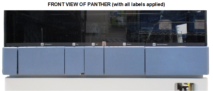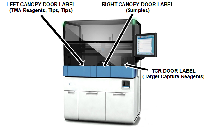Target capture reagent—An assay-specific reagent added as part of specimen pipetting. are now available to install. These labels must be installed on the Canopy Doors above their respective modules.