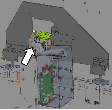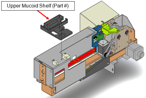 To remove the magnetic upper mucoid shelf, slide it away from the PCB and lift the shelf up. Check that the CAN cable is connected to the Shuttle PCB. Save the mucoild shelf as it will be installed after the shuttle is mounted in the Panther.