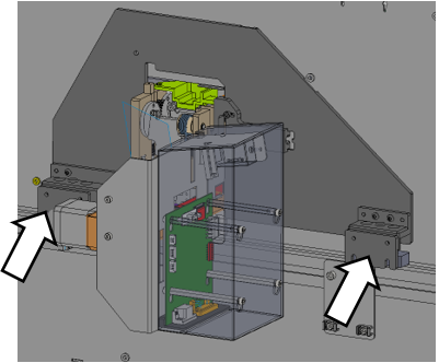 Tighten the two M5 screws on the left side of the Shuttle to secure the Alignment Pin Holder to the mounting bar.
