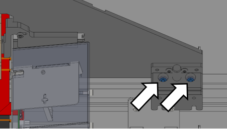 Inside the Panther, tighten the M4 screw at the front hanging location. Make sure the M4 screw is in the mounting keyhole and capturing the Shuttle.