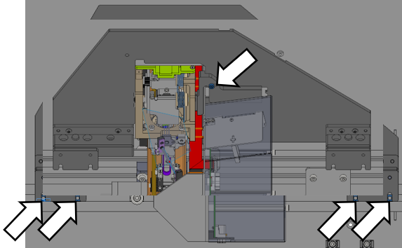 Tighten the two M5 screws on the right side of the Shuttle to secure the Alignment Pin Holder to the mounting bar.