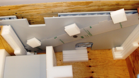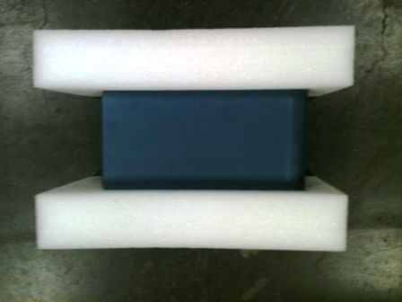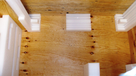 Place foam blocks and side trim pieces into the crate as shown in the following photo.