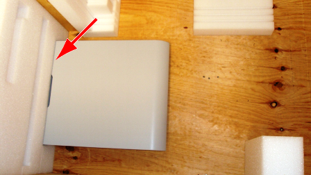 Place the system right side cover into the rear-most slot of the crate as shown in the following photo.