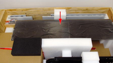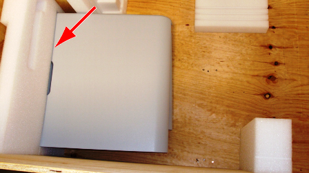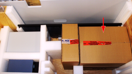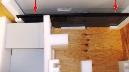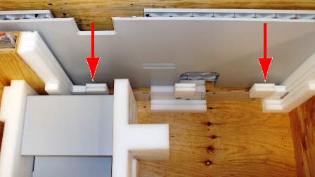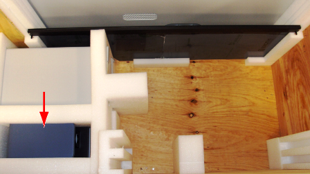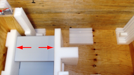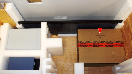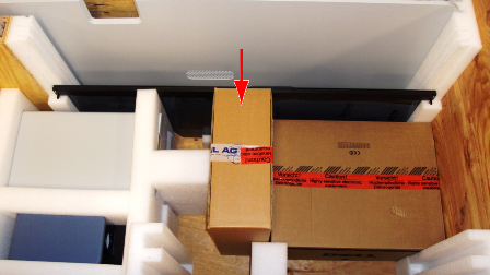 Place the center foam block over and around the monitor box as shown in the following photo.