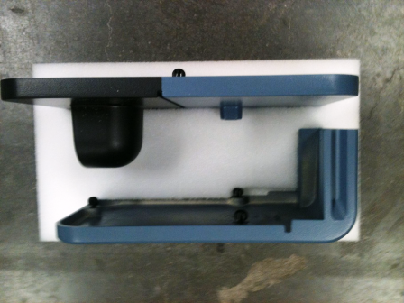 Place and secure the left and right mounting corner covers into the two provided foam blocks.