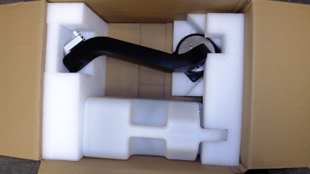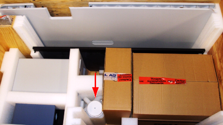 Secure the Waste Bottle (unless discarded) and Monitor Arm with two provided foam blocks and place into the provided box as shown in the following photo.