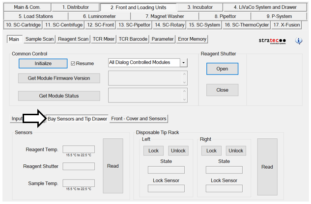 Using Service Software under the 2. Front and Loading Units tab, select Bay Sensors ans Tip Drawer tab.