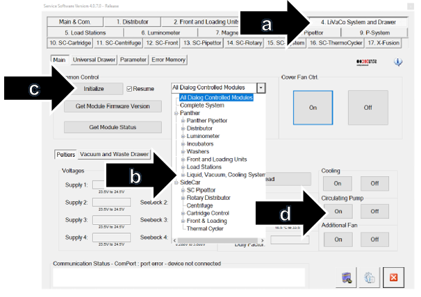 - Click on the 4.LiVaCo System and Drawer tab in Service Software and check the Cooling System temperature as follows: