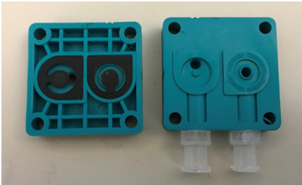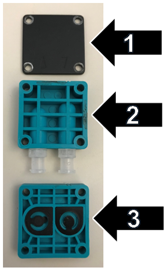 Disassemble the 3 layers of the pump head and place them on a clean absorbent bench pad.
