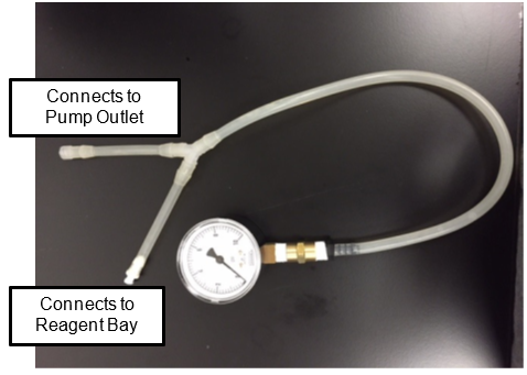 Connect the Cooling Pump Pressure Gauge to the Pump Outlet and the Reagent Bay tube.