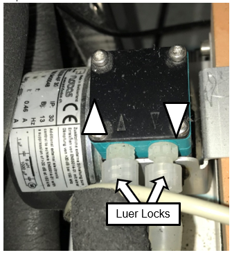 - Disconnect the Luer locks from the Cooling Recirculation Pump over an absorbent bench pad as fluids may drip out of the tubing.