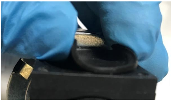 Grip the diaphragm (wet membrane in image below) using your fingertips to curl the edges of the diaphragm.