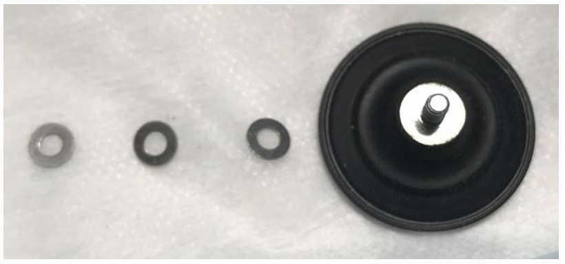 - Place the three washers onto the center screwshaft of the new diaphragm.
