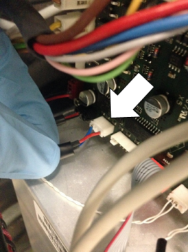 Unplug the liquid coolant pump connector from the PCB.