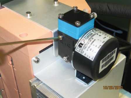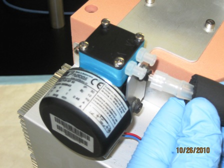Remove the input and output luer connectors from the cooling module pump.