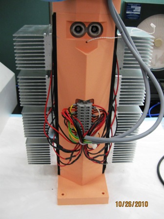 Place the fan shroud over the Peltiers. Note Peltier cable routing in the picture below
