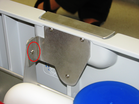 In addition to the four side screws, there is one 2.5 mm screw. Attach the bracket to the waste door with this bolt.