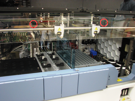 Install the Pipettor front shield using the two 2 mm screws provided on the inside left and right sides of the Panther System.