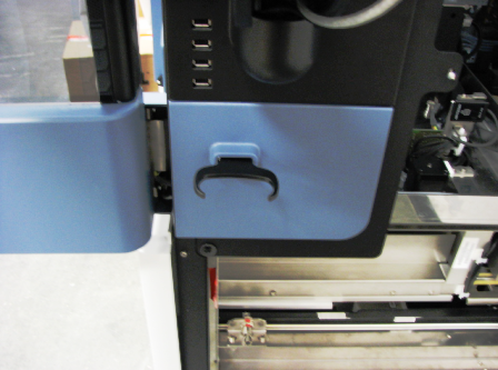 Install the barcode reader bracket below the monitor arm using two 2.5 mm screws from inside the Panther System.- Plug the barcode scanner into the USB port located below the monitor and hang the scanner on the bracket.