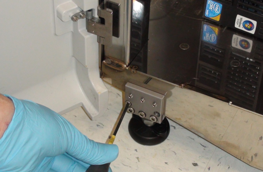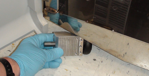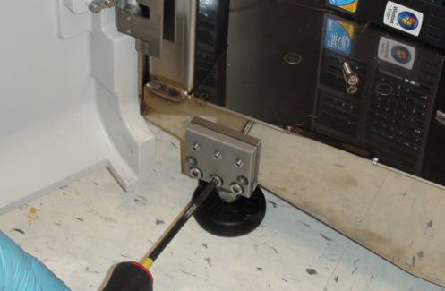 Caution— Be sure that the aluminum block is not crooked beneath the Panther and that the top of the block is flat against the underside of the system. |