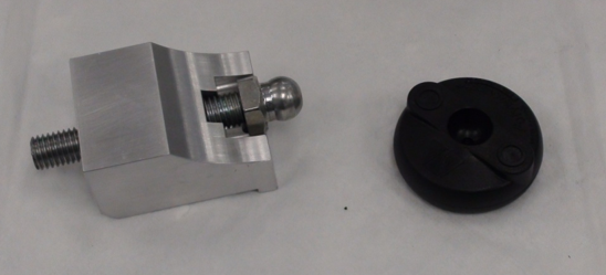 Remove the existing black plastic foot from its threaded stud.