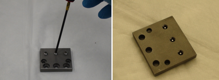Back the set screws out of the metal plate such that they are not projecting through the back side.