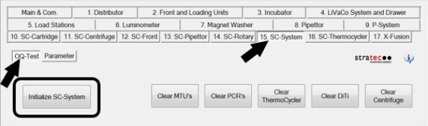 From the 15. SC-System tab, select OQ-Test, then click Initialize SC-System.
