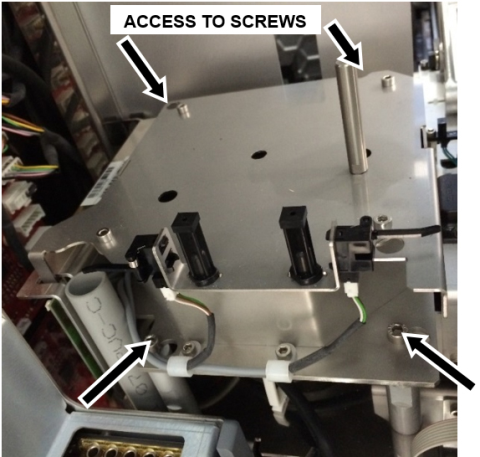 loosen the 4 mounting screws that hold the Centrifuge module. - Slide centrifuge