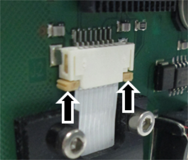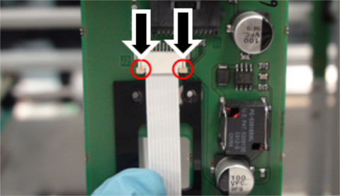 Then pull down gently to disconnect the flex cable from the Pipettor PCB. - While securely holding onto the Pipettor arm,
