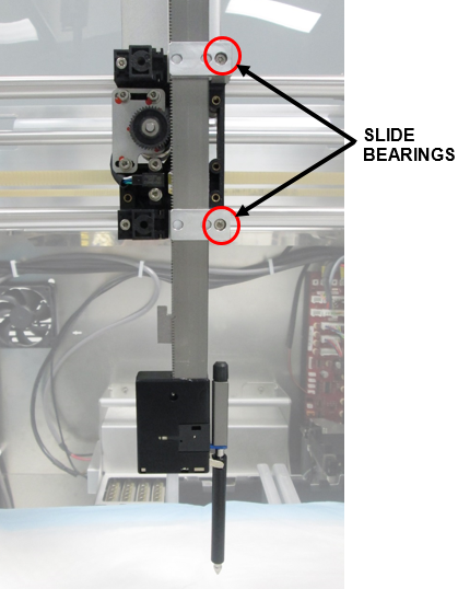 remove both L-shaped slide bearings (2.5mm hex) and set aside.