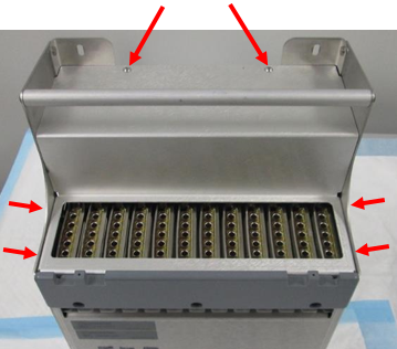 Remove the six hex screws (2.5 mm driver) that secure the metal cover to the thermocycler and set it aside. (2 on top, 2 on right side, 2 on left side.)