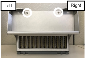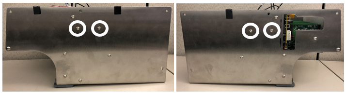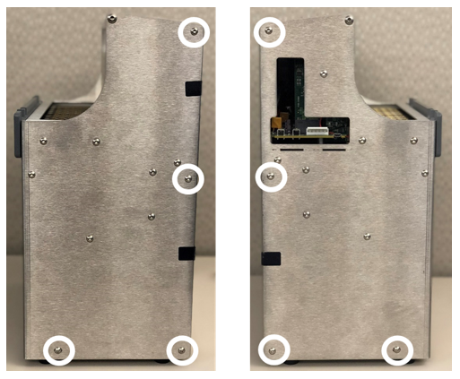 Remove the 2 screws from each side of the Thermocycler and save for reassembly. These screws secure the fan bracket to the housing.