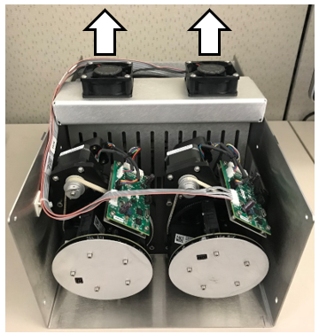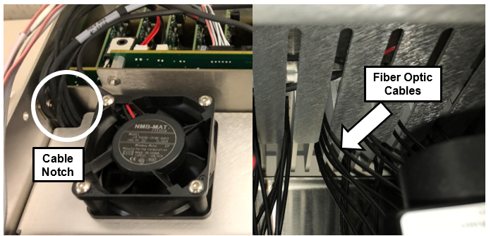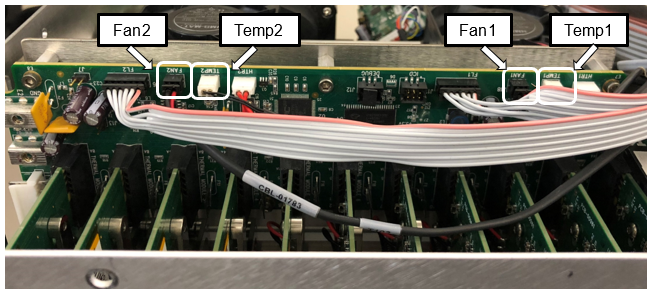 Note— The Thermistors are labeled Temp1 and Temp2 on the circuit board. - Route the cables towards the fans through the notch on the right of the Thermocycler.
