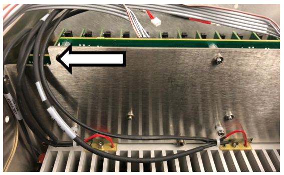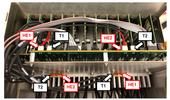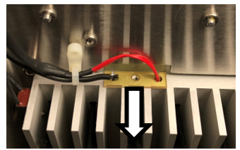 Note— Remember the orientation of the cover, and make sure to not pinch the cables on the left side of the fan bracket. - You will now see the Thermistors located within the large heatsink.