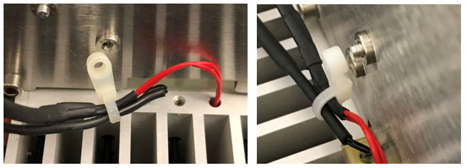 Refer to the images below for zip tie orientation. - Secure the Thermistor and Heat Element.
