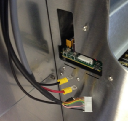 - When re-connecting the power, remove the short power cable with the quick-connect on the end from the old thermocycler, and install the quick-connect on the new thermocycler. Reinstall the (red and black) terminal screws on their respective terminals using a Phillips screwdriver.