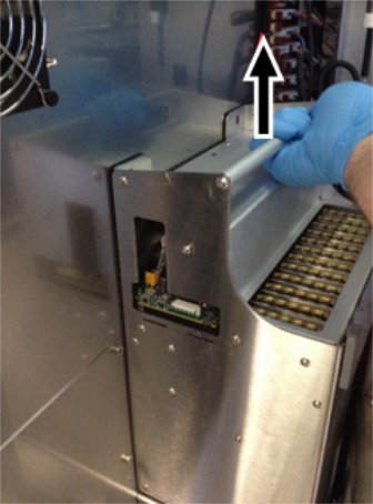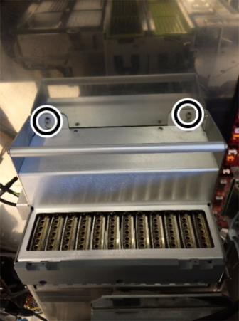 loosen (not necessary to remove) the two screws securing the Thermocycler to the rear of the chassis.