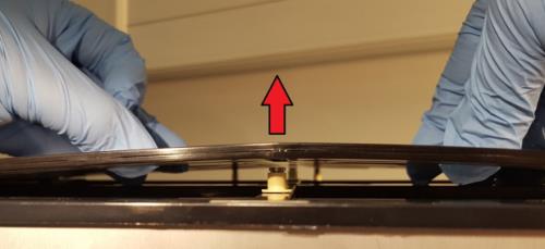 slightly raise the middle of the shutter above the center Guide Pins. - Slide the shutter away from the motors, making sure both shutters slide under the other set of Vertical Guides on the right.